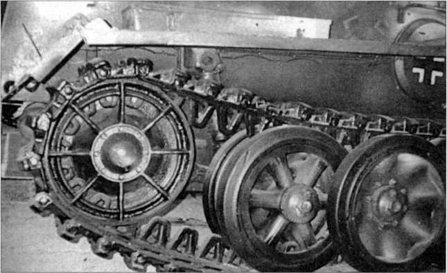 Фотоснимки ленивца и гусеничной цепи танка поддержки пехоты Pz.Kpfw.I Ausf.F. Ширина траков подобной машины составляла 540 мм. Кубинка, 2009 год.
