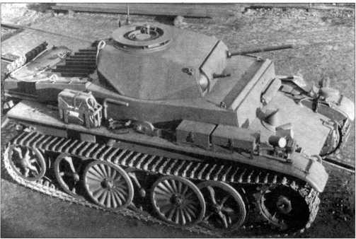 Легкий танк Pz.Kpfw.II Ausf.L «Лухс» из 4-й танковой дивизии на марше. Эта машина имеет дополнительный броневой лист и отсекатель осколков в передней части корпуса. Тактический номер танка — «12». Советско-германский фронт, осень 1943 года.