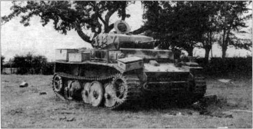 Легкий танк Pz.Kpfw.II Ausf.L, захваченный англо-американскими союзниками. Видно, что на машине отсутствует часть навесного оборудования, пробиты и смяты крылья, утерян глушитель. Танк имеет тактический номер «4121». Франция, август 1944 года.