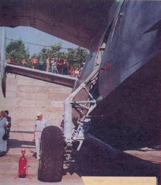 Задняя опора шасси, впереди внизу водяной руль