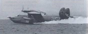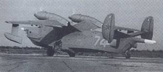Все переучивавшиеся экипажи получили практику выполнения полетов с воды, которые производились, как уже отмечалось, на озере Донузлав. Полеты с воды выполнялись при ветровой волне до 0,6 м, волне зыби – до 0,3 м и скорости бокового ветра – до 5 м/с. При этих условиях заливаемость планера и силовой установки на пробежках, взлетах и посадках считалась допустимой. Радиус циркуляции самолета в штилевых условиях при работе внешнего двигателя на номинальном режиме (УПРТ = 80 град.), а внутреннего – на режиме малого газа (УПРТ = 0 град.), с отклоненным на 15 град, водяным рулем составляет 75 – 80 м (2,5 – 2,7 размаха крыла). На глиссировании при штиле самолет устойчив во всем диапазоне скоростей при углах хода лодки от 3 до 8 град.