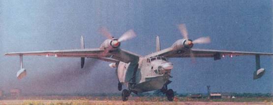 Самолет Бе-12 во второй фазе разбега, видно, что хвост поднят слишком высоко