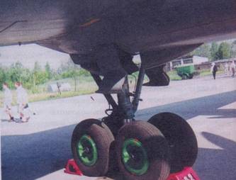 Передняя стойка шасси с гидравлическими цилиндрами механизма управления поворотом