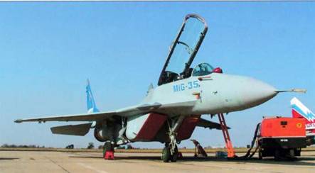 Впервые название МиГ-35 прозвучало в середине прошлого десятилетия в связи с готовившимся Министерством обороны Индии тендером на закупку 126 перспективных средних многоцелевых боевых самолетов по программе MMRCA (Medium Multi- Role Combat Aircraft). На первом этапе, в конце 2006 г., был подготовлен двухместный самолет-демонстратор МиГ-35. Он был построен на базе опытного одноместного МиГ-29М №154 и совместно с МиГ-290ВТ успешно демонстрировался в феврале 2007 г. на авиасалоне Aero India в индийском Бангалоре. Несмотря на то, что в конструктивно-технологическом плане этот самолет несколько отличался от будущих серийных МиГ-35, на нем уже нашла применение унифицированная двухместная носовая часть фюзеляжа, а главное – новейший комплекс бортового оборудования, включающий прототип БРЛС с активной фазированной антенной решеткой (АФАР) и комплекс оптико-электронных средств для обнаружения и сопровождения воздушных и наземных целей, а также для обороны от ракет противника. В дальнейшем самолет-демонстратор использовался для испытаний прототипа БРЛС с АФАР типа «Жук-АЭ» конструкции корпорации «Фазотрон-НИИР» и других новых бортовых систем. В феврале 2009 г. он снова принял участие в авиасалоне в Бангалоре.