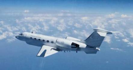 Второй из двух шведских «воронов» – Gulfstream S102B Korpen №023 – идет над Балтикой на высоте 12 500 м. Издали – обыкновенный неприметный бизнес-джет. 14 июля 2014 г.