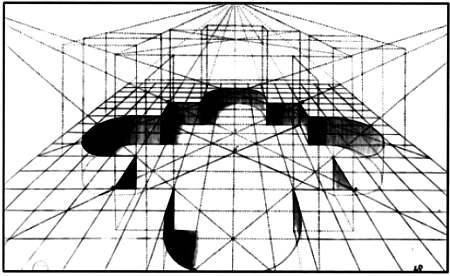 Чтобы получить такое изображение, стекло помещается в рамку, которую держит художник справа. Лучи света (прямые линии) от изображаемого объекта, попадая в глаз художника, проходят через стекло и образуют на нем так называемую проекцию. Таким образом, для художника ключевыми понятиями являются перспектива и проекция.