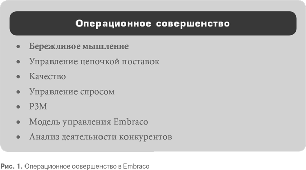 Компания поставила перед собой следующие цели: привести эффективность в соответствие с потребностями рынка, повысить качество продукции, но не особо увеличивая затраты, создать благоприятные условия труда, обеспечить здоровье и безопасность работников за счет надежности всех этапов процесса и оперативно реагировать на запросы клиентов. Достижение этих целей требовало полной отдачи и отлаженной обратной связи между всеми участниками процесса. Добиться этого на производстве чрезвычайно сложно, но Embraco сумела сделать это. Операционное совершенство помогло ей упрочить свои позиции на международном рынке герметичных компрессоров (см. рис. 1).