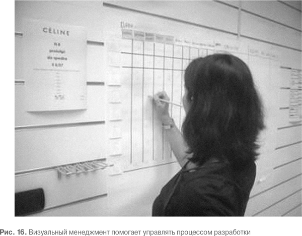 Визуальный менеджмент позволил взять под контроль весьма стремительный процесс, большая часть которого – от заявки на создание прототипа до его изготовления – занимает два-три дня. Менеджеры по продукту больше не нервничали в ожидании прототипа, гадая, будет ли он готов вовремя и успеют ли они на последний рейс, чтобы встретиться с дизайнером в назначенный срок.