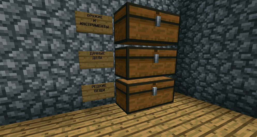 7. Поместите два сундука у нижней части стены, а также две воронки над ними, используя клавишу Shift и правую кнопку мыши. Перед двумя воронками поместите еще две воронки. Все четыре воронки должны находиться под отверстием 2x2 в помещении для мобов. Поставьте четыре полублока над воронками, используя клавишу Shift и правую кнопку мыши.