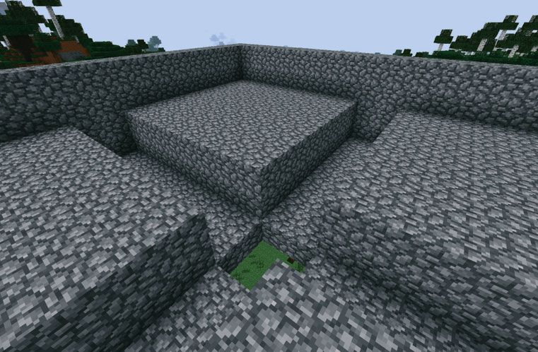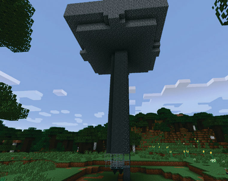 6. Постройте стену 2x2 от одного из краев отверстия 2x2 до земли.