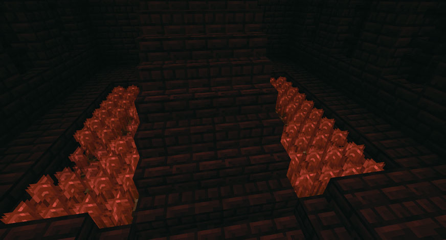 Главная цель путешествия в Нижний мир – отыскать крепость, но из-за тусклого освещения ее трудно заметить. Чтобы решить эту проблему, используйте зелье Ночного зрения или измените параметры видео в настройках игры – максимизируйте яркость экрана и дальность визуализации. Обращайте внимание на плоские, темные, высокие стены крепости, которые идут прямо вверх или вниз, а не на неровные очертания утесов. Крепости Нижнего мира могут иметь длинные дорожки и высокие окна. Крепости располагаются на линиях север – юг, поэтому можно просто направиться на восток или на запад. Компасы не работают в Нижнем мире, поэтому используйте экран отладки (F3) для определения направления своего движения. Для создания указателей на своем пути вам потребуются факелы или Светильники Джека.