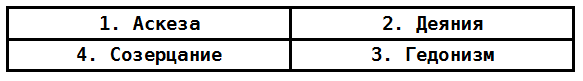 Третий источник — уже собственные представления о том, что сие как бы представляет четыре последовательно решаемые задачи человеческой жизнедеятельности:
