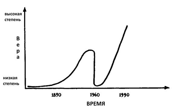 Вера со временем увеличивалась, но около 1960 года наблюдается выраженное ее снижение, которое не только означает, что люди перестали верить в подпороговое восприятие — оно еще означало, что ученые прекратили исследования этого вопроса.