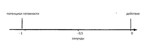 Очевидно, что потенциал готовности должен предшествовать действию, которое он подготавливает. Но не столь очевидным было то, что это приготовление займет столько времени, сколько получилось в экспериментах Корнхубера и Дееке: целую секунду. (В среднем это на самом деле 0,8 секунд, но были зафиксированы и случаи, когда эта величина составляла полторы секунды). Это долго.