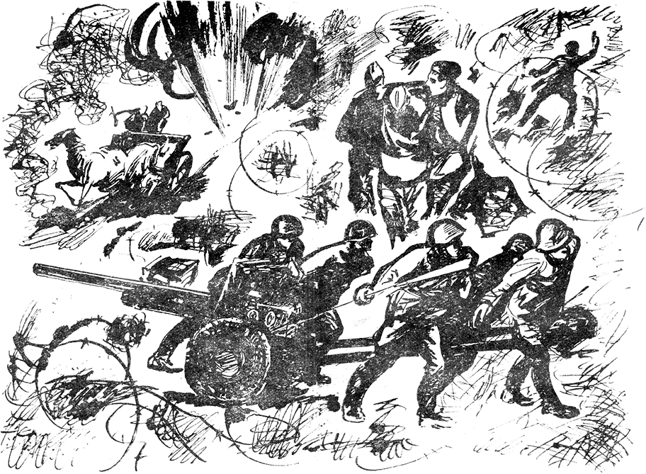 Дорогу спасали люди. Люди-бойцы. Люди-герои. Темные от ветра, запорошенные снегом, молчаливые, с черными очками на лицах, в широких красных и синих штанах, с лопатами, кирками, топорами, они денно и нощно работали на своем посту: очищали дорогу от камней и снега, чинили мосты, прокладывали путь фронтовым колоннам. И машины — с людьми, боеприпасами, горючим, фуражом, провиантом — безостановочно шли на фронт…