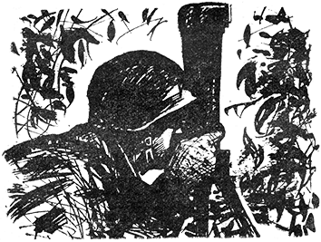 И когда телефонист из блиндажа передает приказ подполковника, люди у пушек действуют отлично. Весь дивизион открывает огонь мгновенно и ведет его в самом быстром темпе.