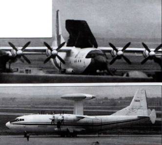 Внизу – единственный снимок опытного самолета дальнего радиолокационного обнаружения Y-8W, переделанный из прототипа Y-8F-200, и самолет ДРЛО на базе планера Y-8F-400, получивший в западной прессе обозначение Y-8AWACS