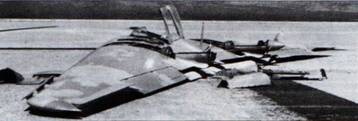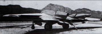 Авария самолета N-9M-2, которая произошла из-за ошибки летчика майора Ритча, забывшего выпустить шасси. Внизу – самолет уже поднят на шасси. Авиабаза Мюрок, 20 апреля 1944 г.