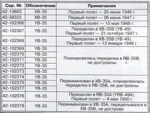 – RB-35A – разведчик с шестью ТРД: четыре – в крыле, два – на пилонах под ним;