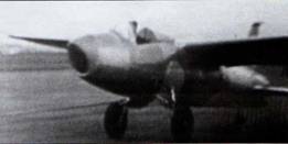 Взлетает экспериментальный самолет Не 176, пилотируемый Эрихом Варзицем (кадр кинохроники)