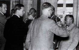 На банкете после первого взлета Не 178. Второй слева – Эрих Варзиц. первый справа (спиной к окну) – Эрнст Хейнкель