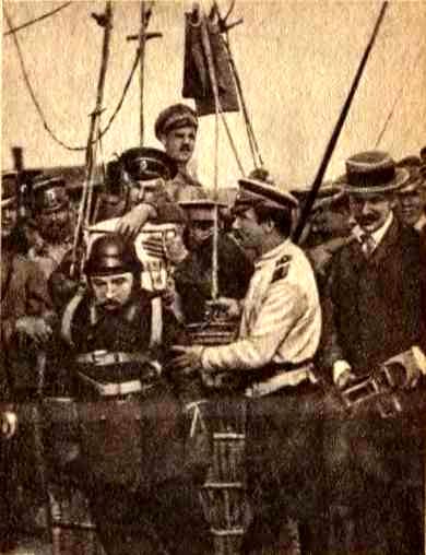 В корзину вошел летчик штабс-капитан Горшков с двумя помощниками.