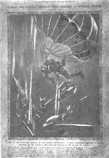 Иллюстрации в английском журнале «Лондон Ньюс» от 28 сентября 1912 года, изображающая русский ранцевый парашют.