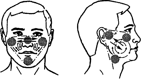 1. Точка перед козелком уха. Найти ее можно так: открываем рот, перед козелком уха находим ямку (углубление), закрываем рот. Средними пальцами надавливаем на ямку. Круговыми движениями массируем в одну и другую сторону по 8–10 раз.