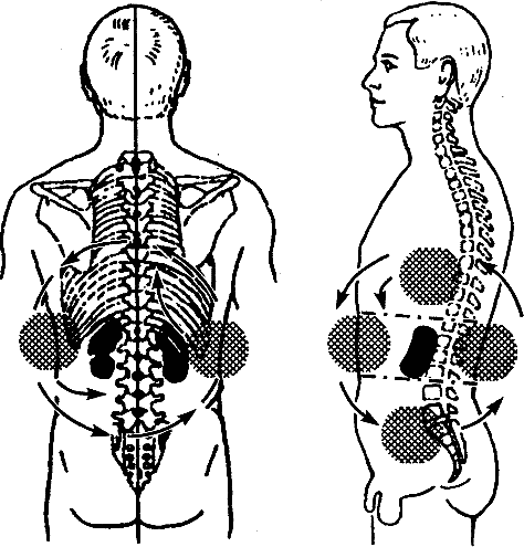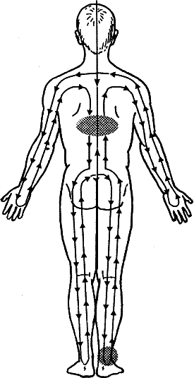 Рис. 18. Передвижение трех ощущений по конечностям и через позвоночник
