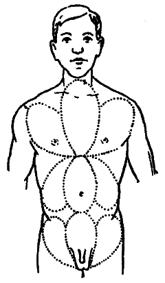 В древних книгах по медицине были обнаружены изображения тела человека, разделенного на участки, очень напоминающие лепестки лотоса – сказочно красивого цветка, которому приписывают необычайные свойства, считают символом благородства и красоты. По размерам эти лепестки самые различные – от гигантских до очень небольших (рис. 25).