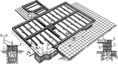 Рис. 4.21. Фундамент и элементы нижней обвязки дома в четырех уровнях