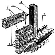 1 – деревянный уголок; 2 – стяжка; 3 – элементы каркаса; 4 – внешняя обшивка панели; 5 – шурупы