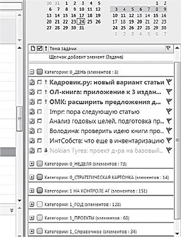 На тренингах часто задают вопрос: сколько времени занимает ведение системы? По моим наблюдениям, порядка 5 минут утром при планировании дня и еще порядка 5–7 минут в общей сложности в ходе дня. Плюс 10–20 минут для просмотра более долгосрочных разделов раз в неделю. Благодаря тому, что все автоматизировано, многие функции взаимоподдерживаются (например, хронометраж получается практически без дополнительных усилий из планирования; задачи – из e-mail), что экономит массу времени. То есть ведение системы занимает столько же времени, сколько записи в бумажном ежедневнике, а вот количество контролируемых задач и встреч, колоссальные возможности аналитики и, что немаловажно, внешняя привлекательность и аккуратность несравнимы ни с одним бумажным носителем.