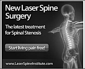 Текст объявления: «Новый метод лазерной спинальной хирургии. Самый передовой метод лечения стеноза спинномозгового канала. Живи без болей в спине!» Прим. перев.