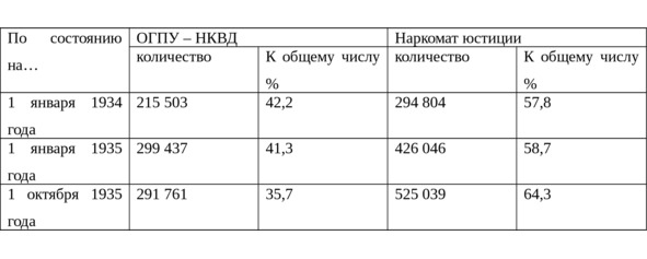 Численность осужденных по линии ОГПУ – НКВД и Наркомата юстиции в 1934 – 1935 годах 78 .