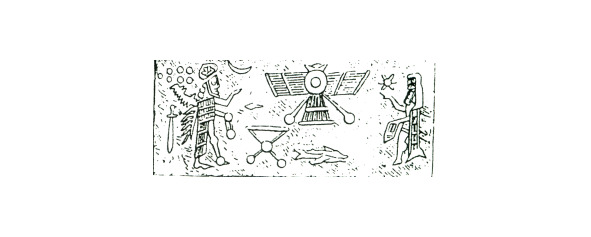 Изображение Земли и Марса с летящим космическим объектом на древнешумерской глиняной табличке
