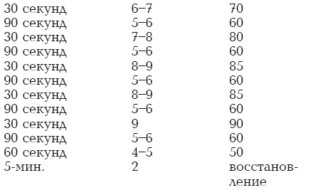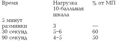 4-й день: интервальный тренинг, нагрузка 70–80 % от МП.