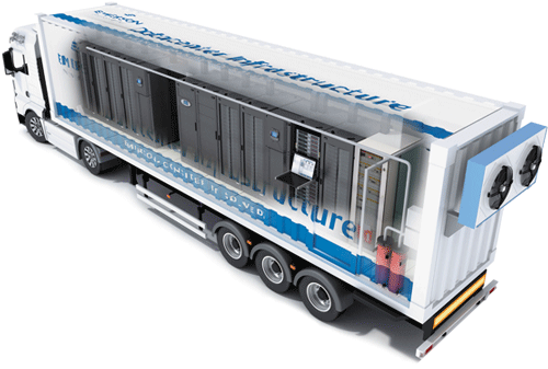 Мобильный контейнерный центр обработки данных. Идея заключается в превращении мощных вычислительных центров в законченные мобильные комплексы, которые не требуют специального развертывания и пусконаладочных работ. www.emersonnetworkpower.com
