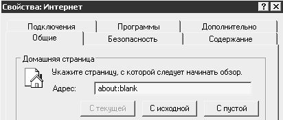 Результат выполненных действий изображен на рис. 2.58 – вкладка Содержание удалена из окна Свойства: Интернет.