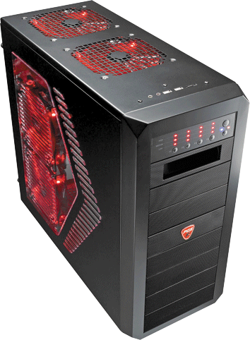 Красивый корпус для мощного ПК рассчитан на платы формфактора ATX или microATX, глубокий черный цвет наружного лакового покрытия контрастирует с красным внутренним убранством и алой светодиодной подсветкой акрилового окна в боковой стенке, системы охлаждения и ряда элементов декора. www.aerocool.com.tw