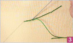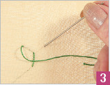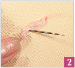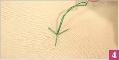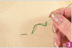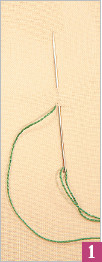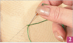 1. Выведите иглу с изнаночной стороны ткани на лицевую.