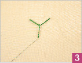 2. Сделайте первый стежок рисунка так, чтобы при выходе на изнаночную сторону игла проткнула этот хвостик.