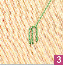 3. Проведите иглу под стежком и введите в ткань справа от стежка немного дальше его окончания. Затяните второй стежок.