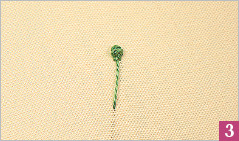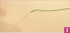 1. Выведите иглу на лицевую сторону ткани, как для французского узелка.