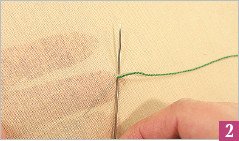 4. Протяните иглу через эти навивки. Придерживайте навивки, прижимая иглу к поверхности ткани.