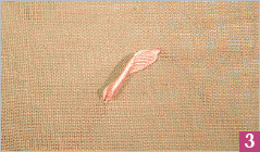 4. Выполните длинный свободный перекрученный стежок. Примерно посередине закрепите ленту на ткани прикрепкой из той же ленты или незаметным стежком «вперед иголку» тонкой ниткой в цвет. Такой стежок называется прямой со смещением. 5. Выполните прямой стежок нужной длины. Выведите иглу на лицевую сторону и обкрутите стежок ниткой или лентой. Снова выведите иглу на изнаночную сторону. Это прямой стежок с навивкой.