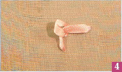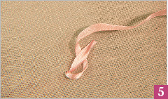 1. Выведите иглу с заправленной в нее лентой с изнаночной стороны ткани на лицевую. Расправьте ленту и выполните стежок шва «вперед иголку». Затяните ленту.