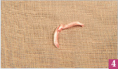 3. Ленту, выведенную на лицевую сторону, перекрутите 1–2 раза, после чего выполните стежок. Такой стежок называется прямой перекрученный.