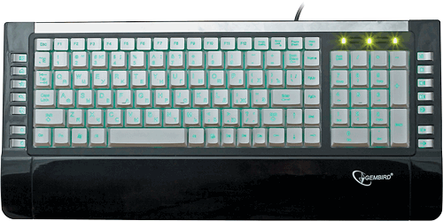 Сверхтонкая клавиатура с изумрудной подсветкой символов. Как утверждает изготовитель, это первая недорогая клавиатура с подсветкой как латинских, так и кириллических букв. Символы нанесены методом лазерной гравировки, подсвечиваются сами буквы, а не клавиши целиком. www.c-trade.ru