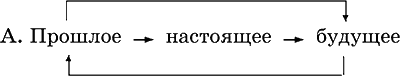 Внутри нас время течет иначе, чем в мире физическом (А), где есть линейная зависимость. В мире психическом прошлое определяет потребное будущее, которое в свою очередь влияет на настоящее.